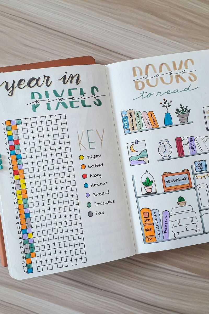 - Journal spreads: Colorful and fun journaling that can include doodling, boxes e.t.c.